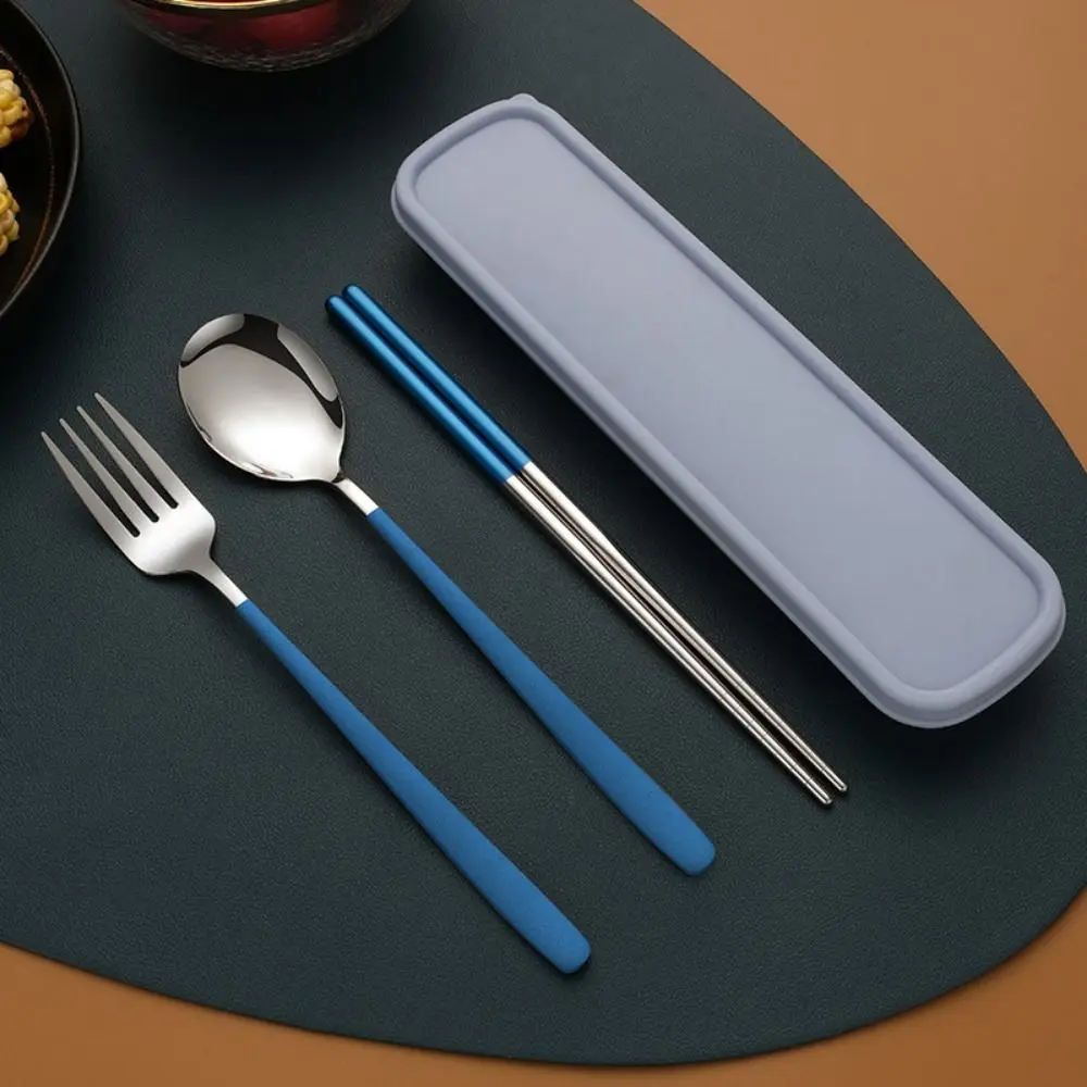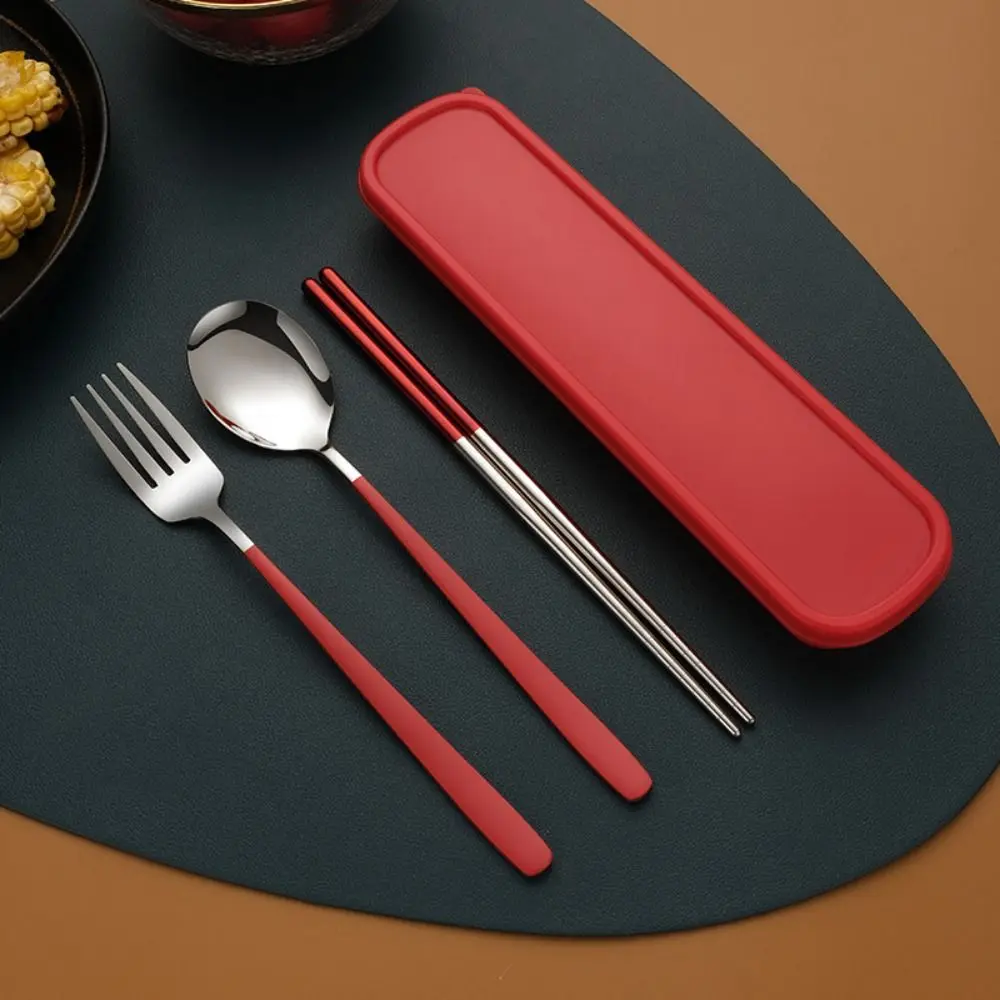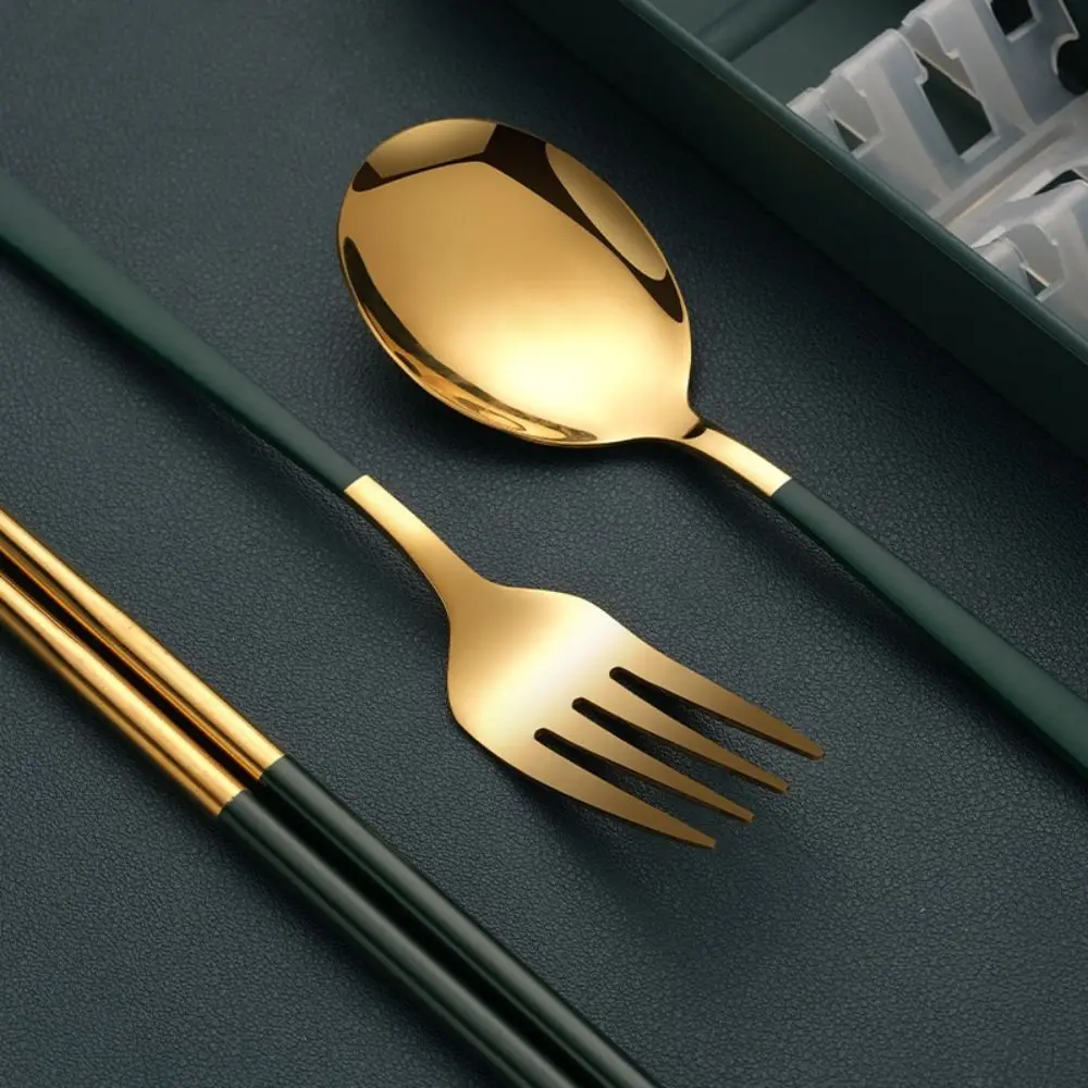 1. Material aspect: Made of stainless steel material, stainless steel usually has the advantages of corrosion resistance, durability, and easy cleaning. 2. Portability: It is easy to carry when traveling, picnicking, camping, and other outdoor activities, and can meet dining needs any time and anywhere without worrying about not having suitable tableware. 3. Functional diversity: It includes several common tableware, such as forks, spoons commonly used in Western cuisine, Chopsticks for Chinese cuisine. 4. As a gift: The appearance is exquisite and beautiful, and the overall packaging is very suitable as a gift for family, friends, colleagues, etc.